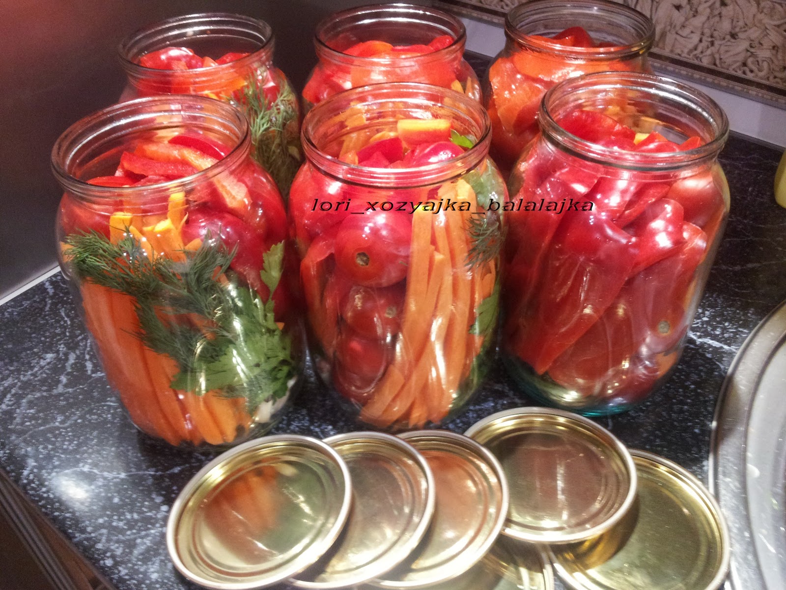 Маринад вскипятить, залить в банки, стерилизовать 15-20 мин.и закатать.