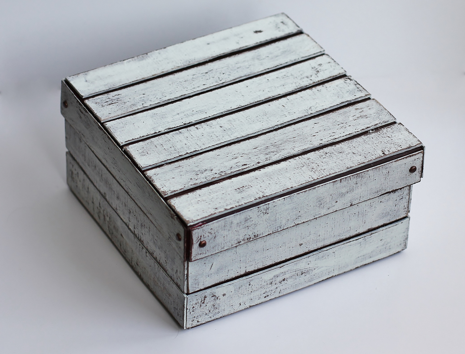 Для начала окрашиваем коробку коричневой акриловой краской.