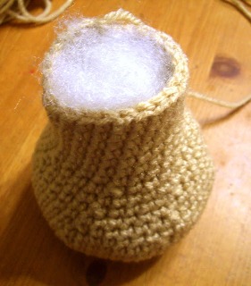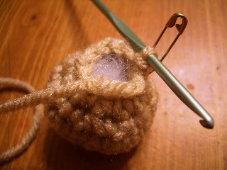 Fasten off. Leave bottom open for sewing later. Shape head into an oval.