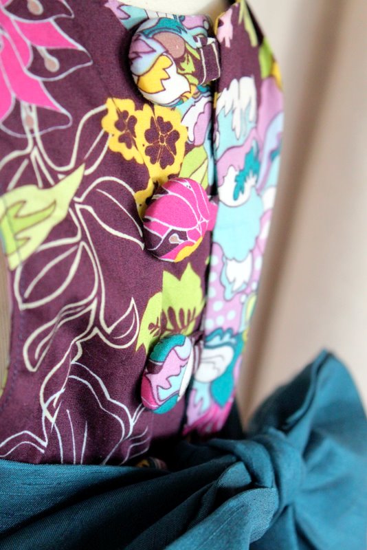 Наметьте месторасположение пуговиц. Деталь с петлями должна на 4-7 мм накладываться на вторую часть спинки лифа. Пришиваем пуговицы.