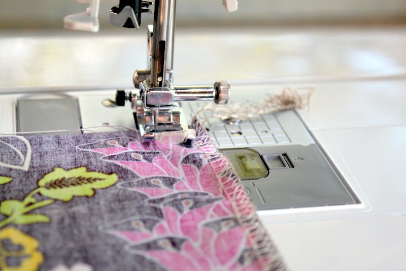 Сшиваем задние части полотнища, оставив 8 см сверху не зашитыми. Все швы обрабатываем швом зиг-заг и разутюживаем.
