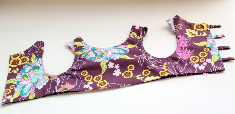 После того как вы стачаете плечевые швы, у вас останется открытой небольшая часть каждой из пройм.