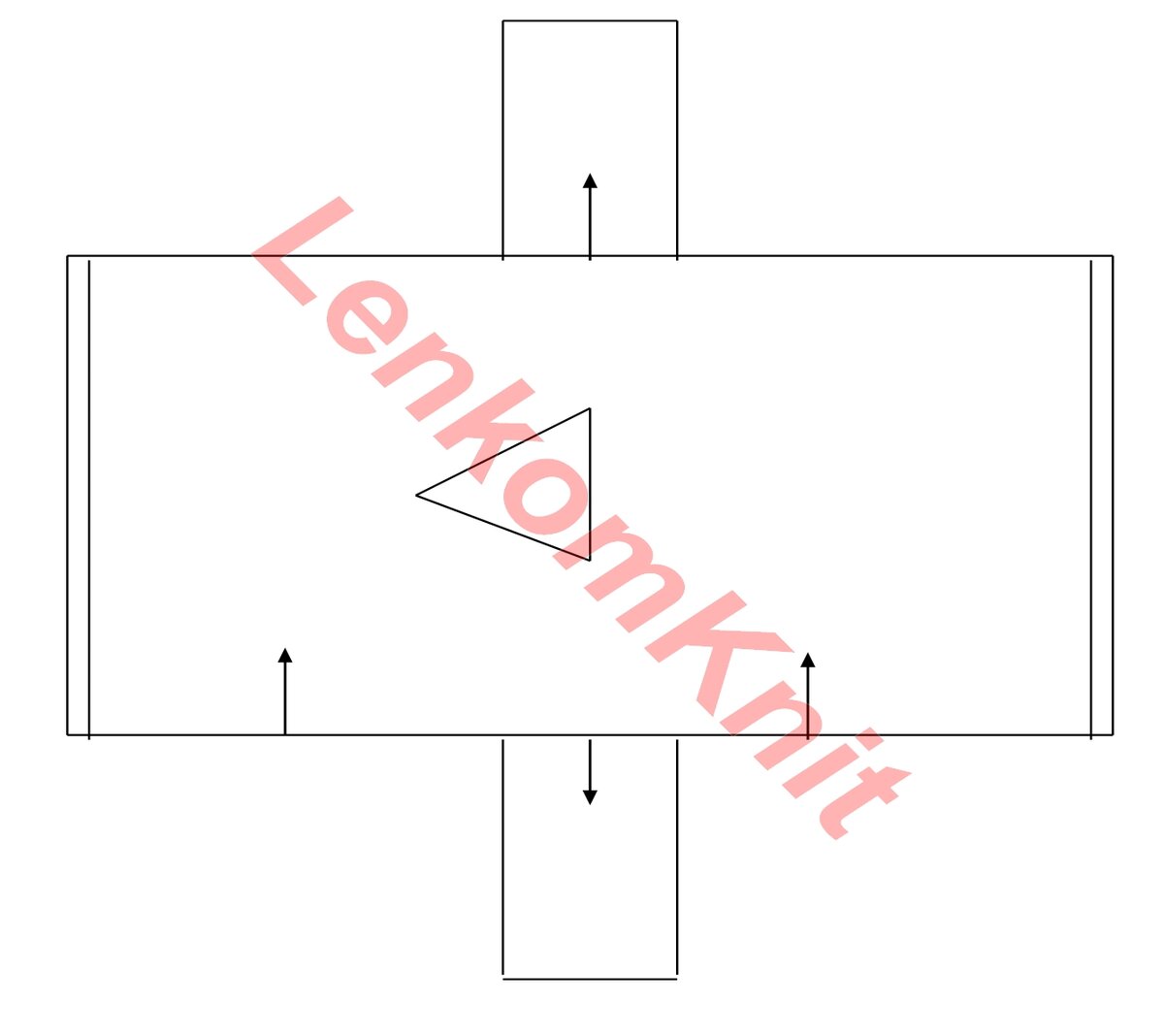 На рисунке стрелками отмечено направление вязания. Сначала вяжем прямоугольник с вырезом горловины по центру. Затем прямоугольник складываем пополам и сшиваем по боковым швам. После этого набираем петли и вяжем рукавчики резинкой 1х1.