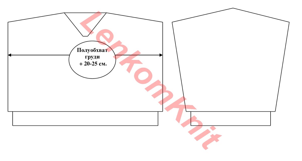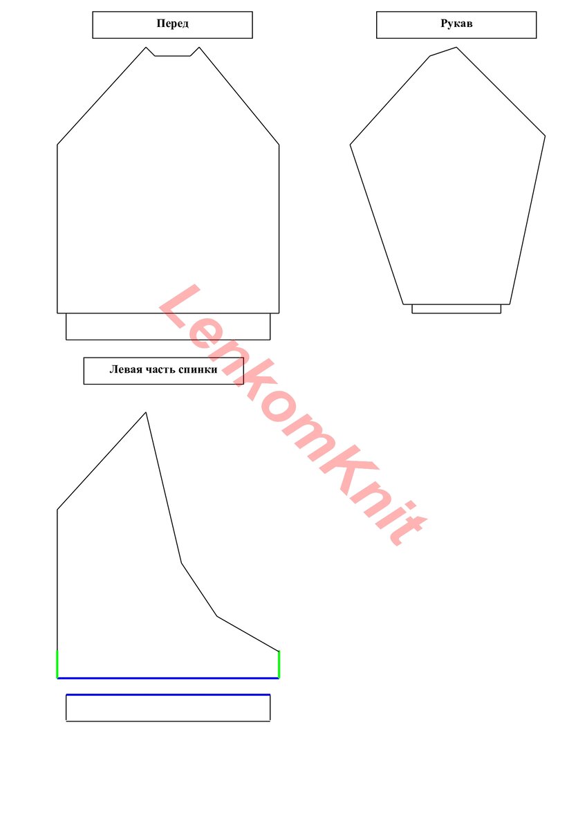 А спинка вяжется из двух половинок. На выкройке - левая половинка, правая вяжется зеркально. Я думаю, что правая часть вяжется без резинки (чтобы не придавать ненужный объем).