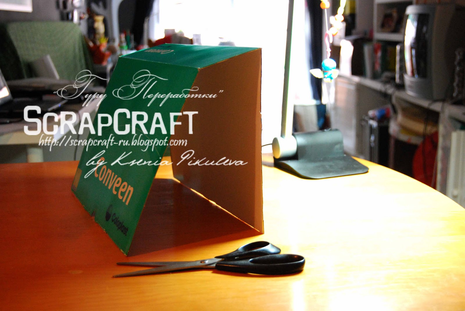 Обрезаем боковые части коробки, оставляя лишь переднюю, заднюю сторону и соединяющую их часть.