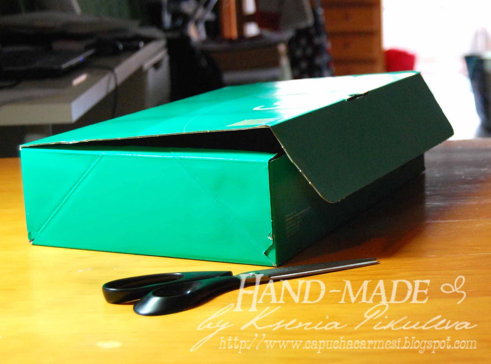 Стоит заметить, что за основу своей идеи я взяла, быть может известную некоторым, технику создания сумки из старой книги, но т.к. в семейной библиотеке у нас пока старых книг нет и порезать нечего, да и, к тому же, жалко, я решила переработать то, что есть- обычнную коробку.