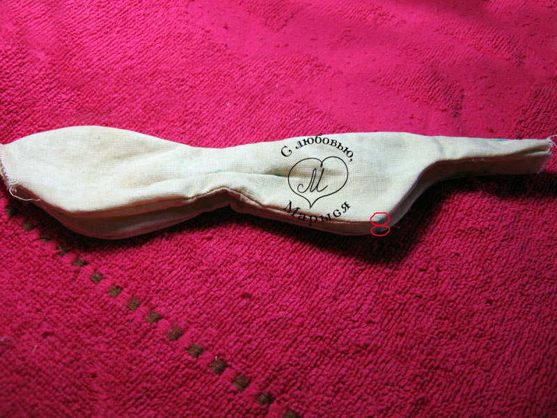 Нам осталось закрыть временным смёточным швом отверстие в области шеи и начинать набивку.