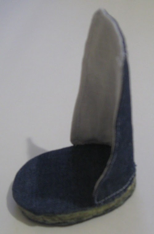 Вырезаем из картона, по размеру ноги, овал и обтягиваем его тканью. Таких овалов нам понадобится два для одного сапожка (один овал - стелька, другой - подошва) и два для другого.