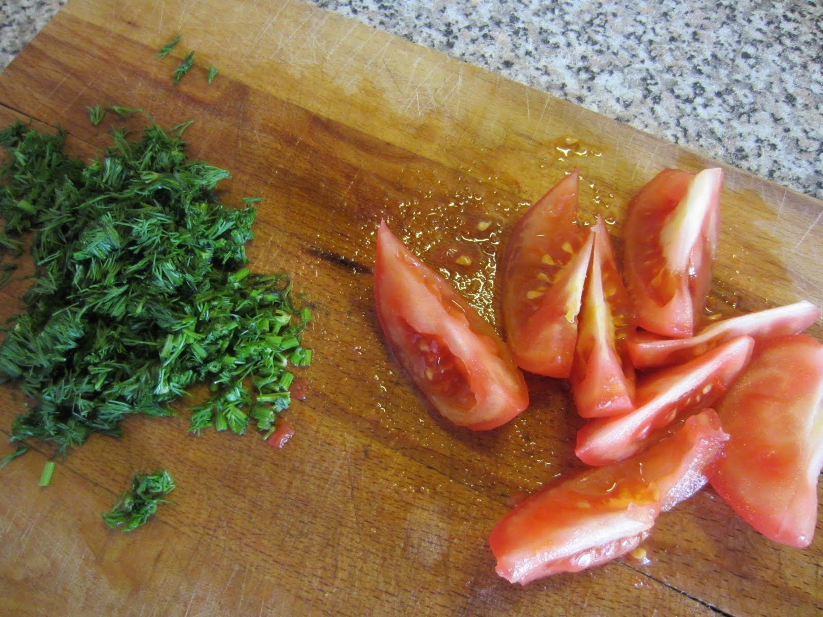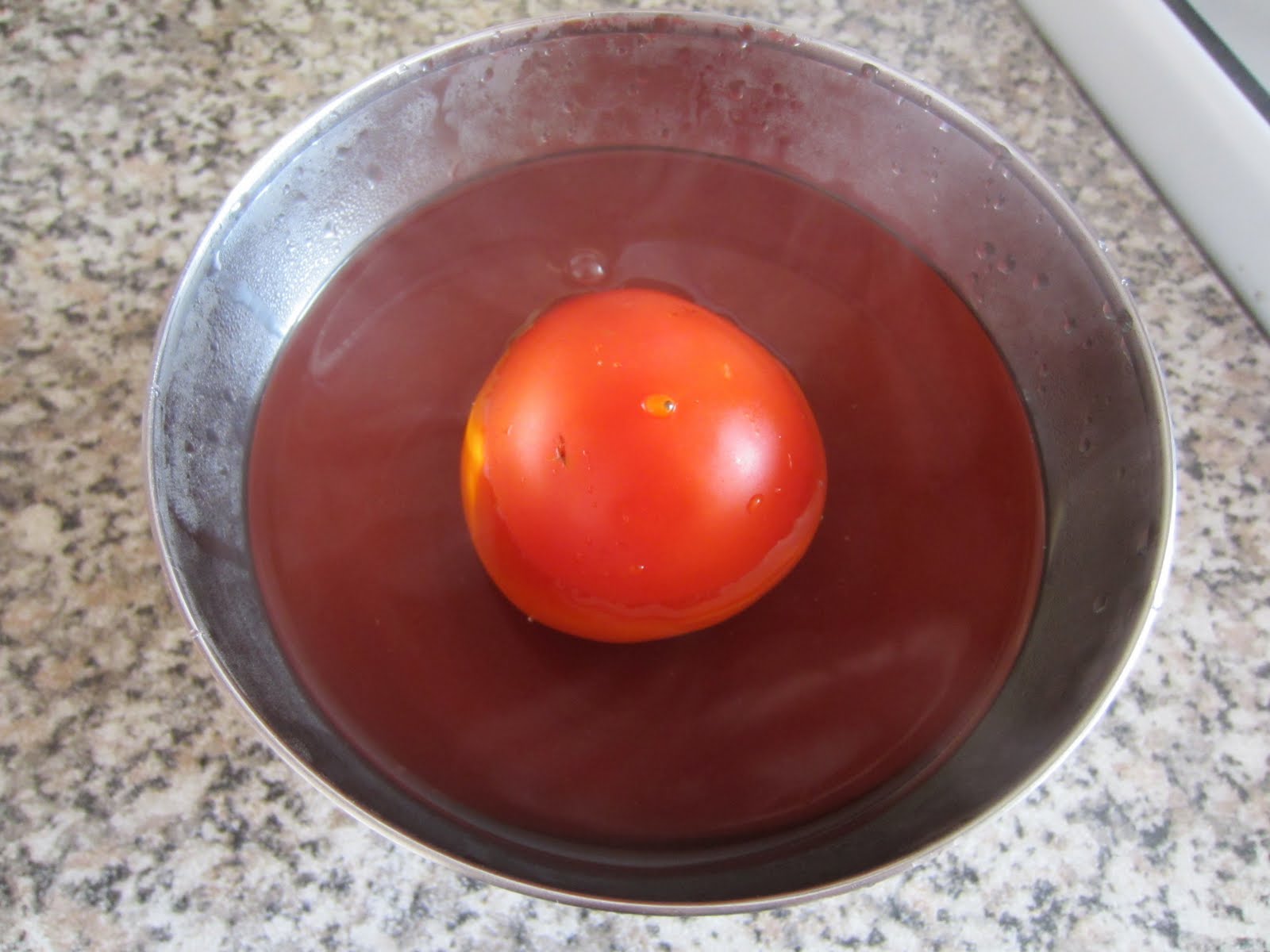 Помидорку заливаем кипятком, т.е. бланшируем.