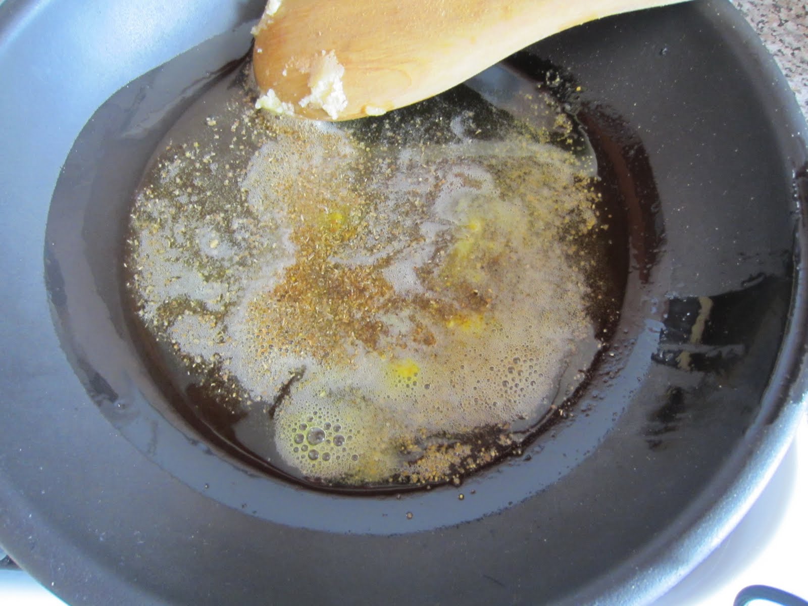 На сковороде растапливаем масло и в течение нескольких секунд обжариваем специи.