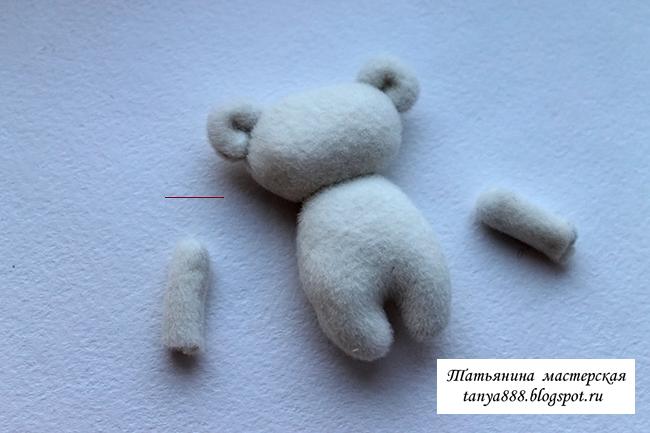 6. Берем синтипон и набиваем им детали: туловище, голову и совсем чуть-чуть лапки.