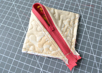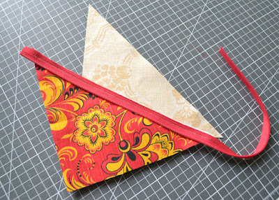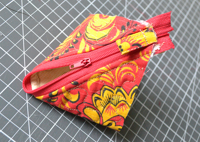 Выворачиваем наизнанку ("молнию" оставьте приоткрытой!), совмещаем углы и превращаем в квадрат: