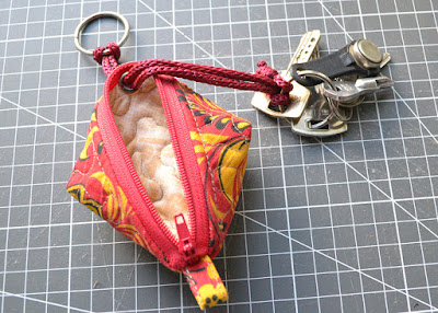 Размер квадратов можно взять любой, в зависимости от предназначения: побольше - получите косметичку, поменьше - брелок.