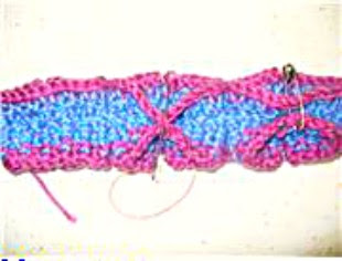 Итак... Набираем петли цветом А , провязываем 1 ряд узором ''мелкий жемчуг'',или любым простым узором.