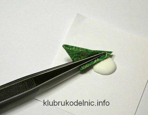 3. Треугольник крепко держим пинцетом и в нижней части обрежем наискось. На фото видите в сравнении обрезанный треугольник на фоне необрезанного.
