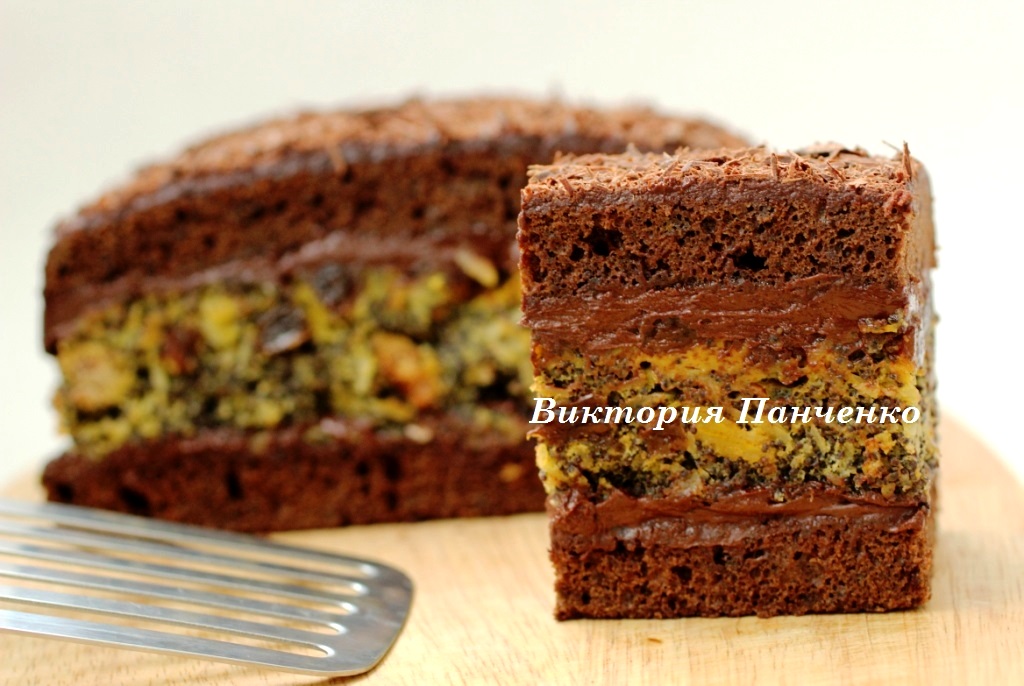 Сверху положить маковый корж.