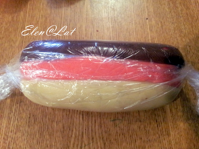Еще вариант. Катаем по четыре тонких жгута каждого цвета. Их должно получиться 12.