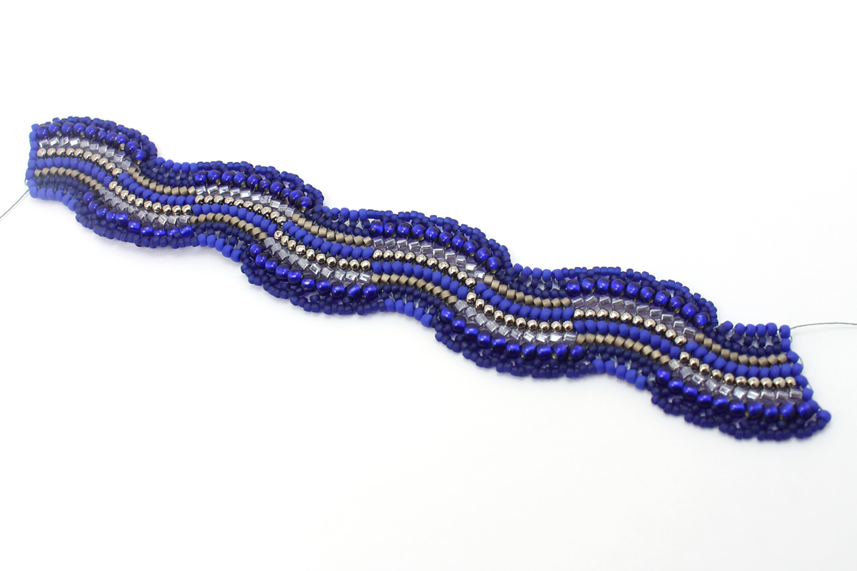 Плетем 80 рядов в технике ндебеле + первый основной ряд. Всего должно получиться 8 волн, по 4 в каждом направлении.