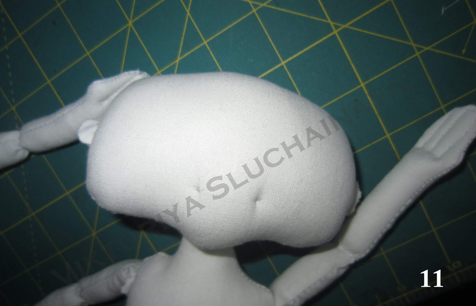 прошиваем пальчики на машинке или вручную.Затем набиваем руку плотно до локтя,затем свободно |