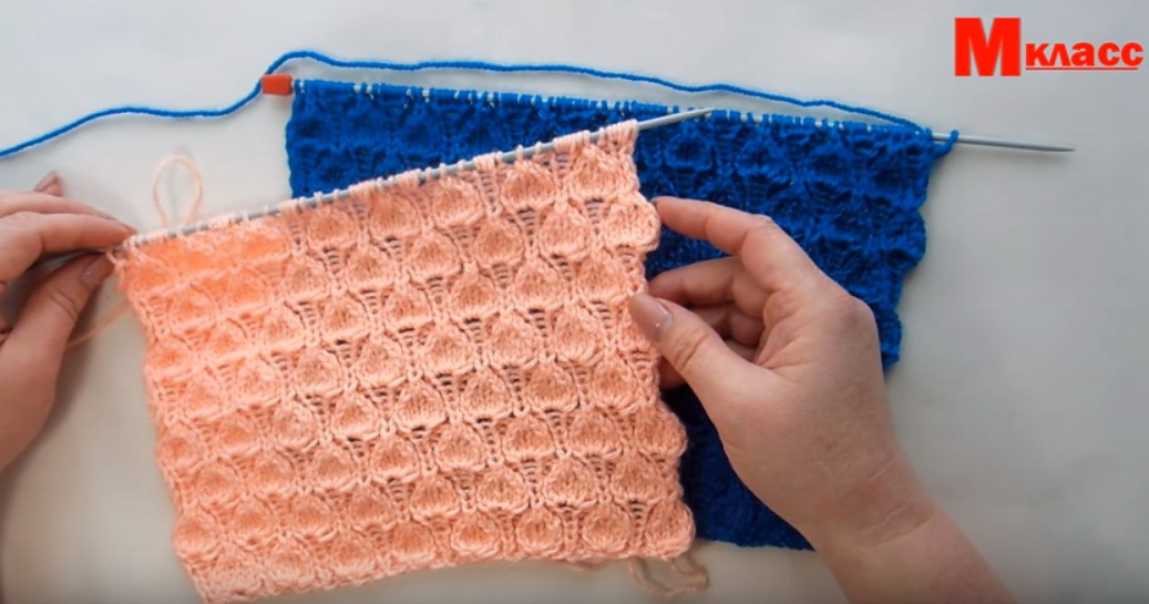 Рельефный узор с выпуклыми листочками с описанием. Раппорт 4 петли, 12 рядов. Набирается количество петель кратно 4 + 3 петли для симметрии + 2 кромочные. Листочки небольшие, слегка выпуклые. Узор подойдет для толстых ниток и ниток средней плотности, для любых изделий.