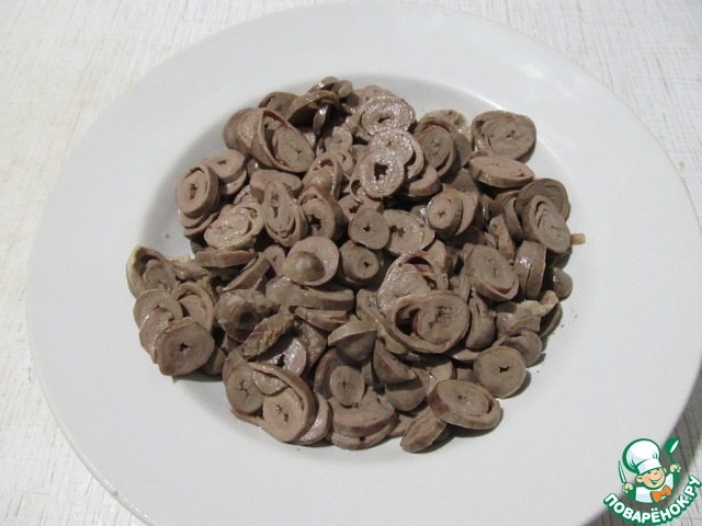 С этим салатом связана одна история из 90-х. Мы часто справляли новый год у маминого брата в деревне. У них большой дом, да и возле дома раздолье - есть место и для ёлки, и для веселья. Раньше купить субпродукты была проблема, но поскольку дядя с женой работали на птицефабрике, то у них на праздничном столе сердечки были всегда. В тот новый год у них в гостях была какая-то родственница, которая на дух не переносила ничего куриного. И для неё мало блюд подходило, в которых не было бы курицы. И вот поставили салат с сердечками. Ещё не успели ничего сказать, как женщина с радостью кинулась к "грибочкам". Тетя подала нам знак, чтобы молчали. Мы конечно же промолчали, а потом было уже не до того - Новый год, веселье. Лишь утром тетя призналась женщине, чем она угощалась. Посмеялись... И хоть она курицу так и не ела, от "грибочков" не отказывалась. С тех пор этот салат мы стали называть "Куриные грибочки".