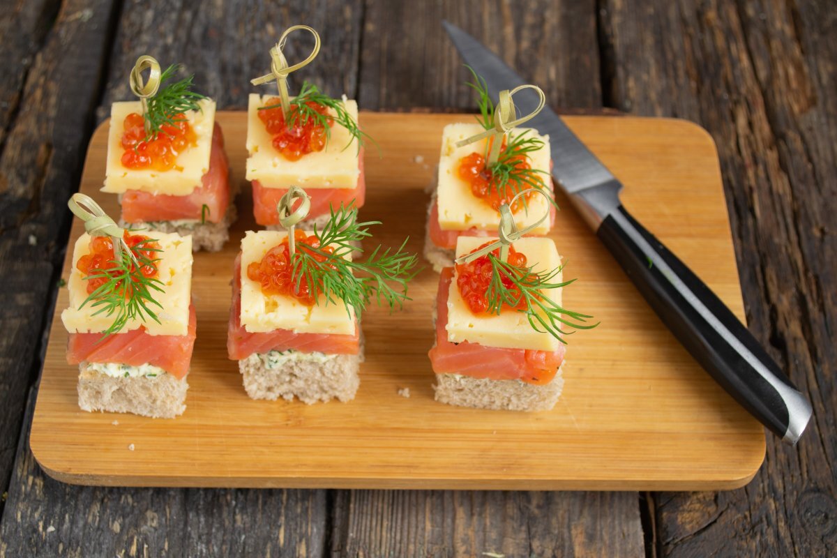 Эта аппетитная закуска станет роскошным дополнением праздника. Крохотные бутербродики с вкусной рыбкой с радостью оценят и дети, и взрослые!