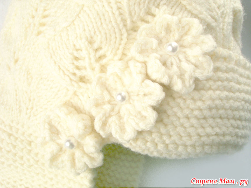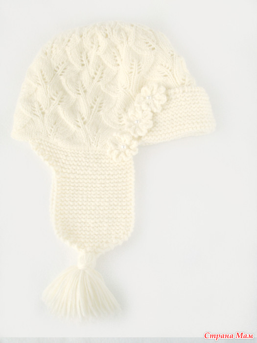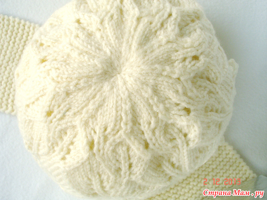 здесь Мария Матвеева вяжет этим узором берет( есть схема убавок) http://myknitblogmm.blogspot.ru/2010/03/embossed-leaves-berert.html. Ушки и козырек двойной нитью платочной вязкой. Сначала вяжется внутренняя шапка сверху вниз, затем ряд изнаночными(для сгиба). А далее вверх вяжется узором верхняя шапка. Для ушек и козырька набирала петли по краю шапочки (из петелек сгиба). здесь пост, как оформить сгиб в вязании от Rukodelochka http://www.stranamam.ru/post/4228982/Тут про вязание от центра спицами http://www.stranamam.ru/post/1933722/