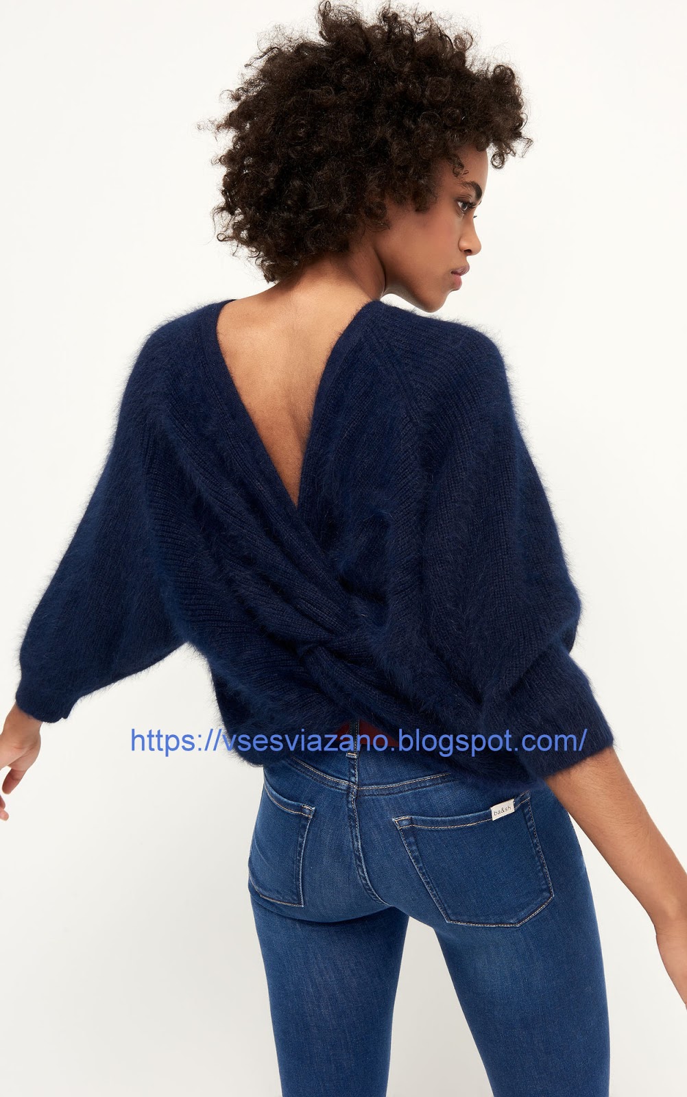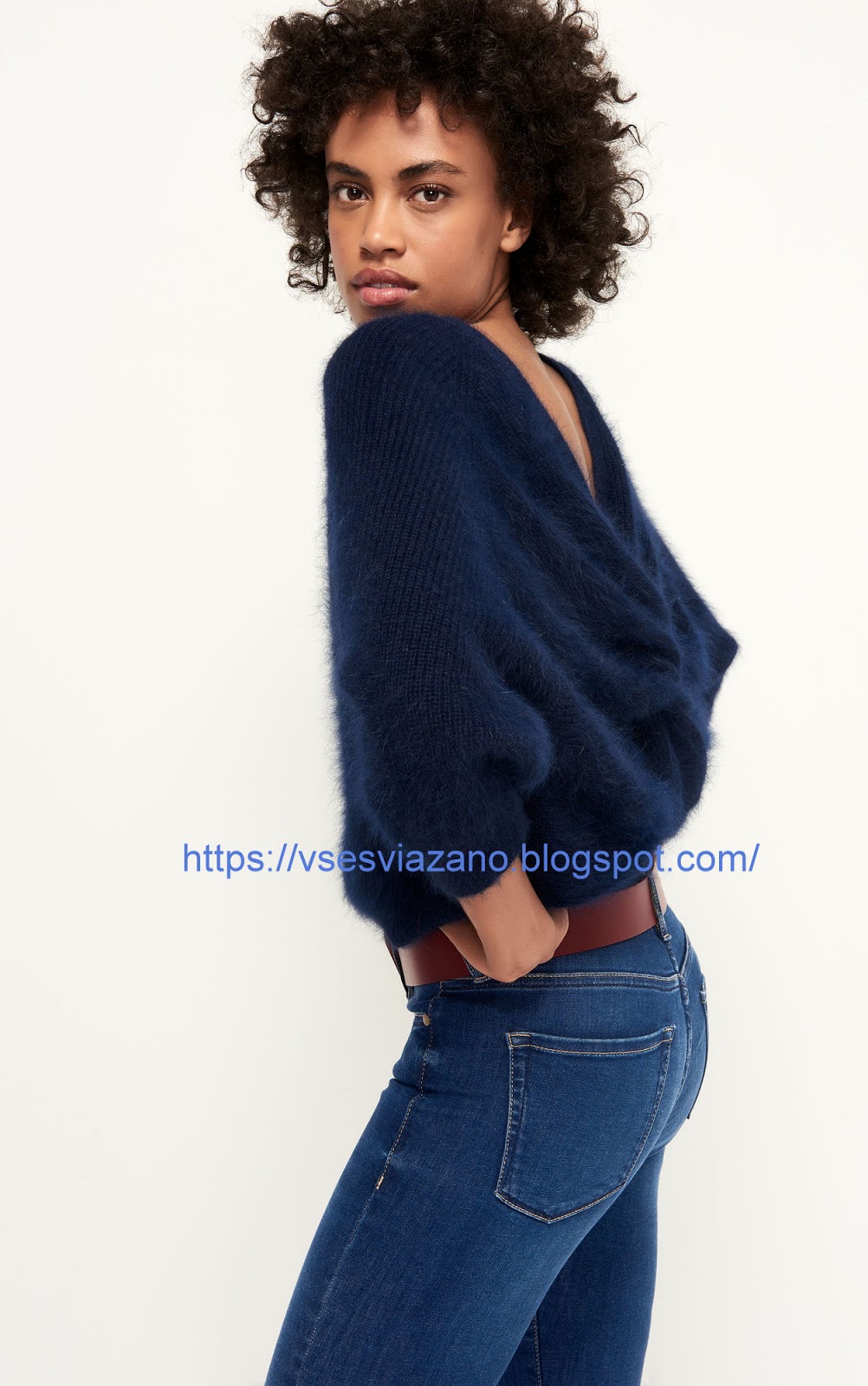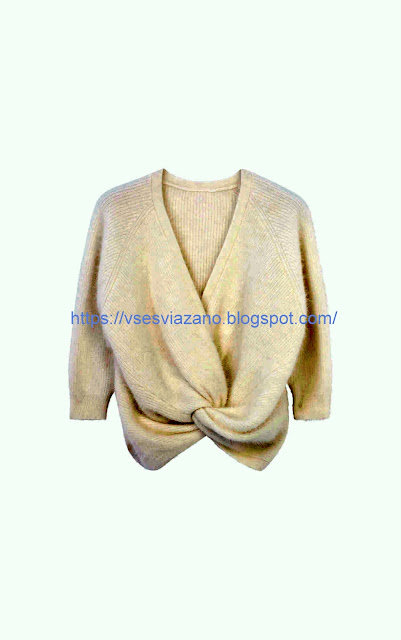 Вот точно такой же пуловер, но он связан маленьким. По фото оригинала пуловера с французского сайта видно, что намного красивее, если он будет побольше и будет красиво драпироваться.