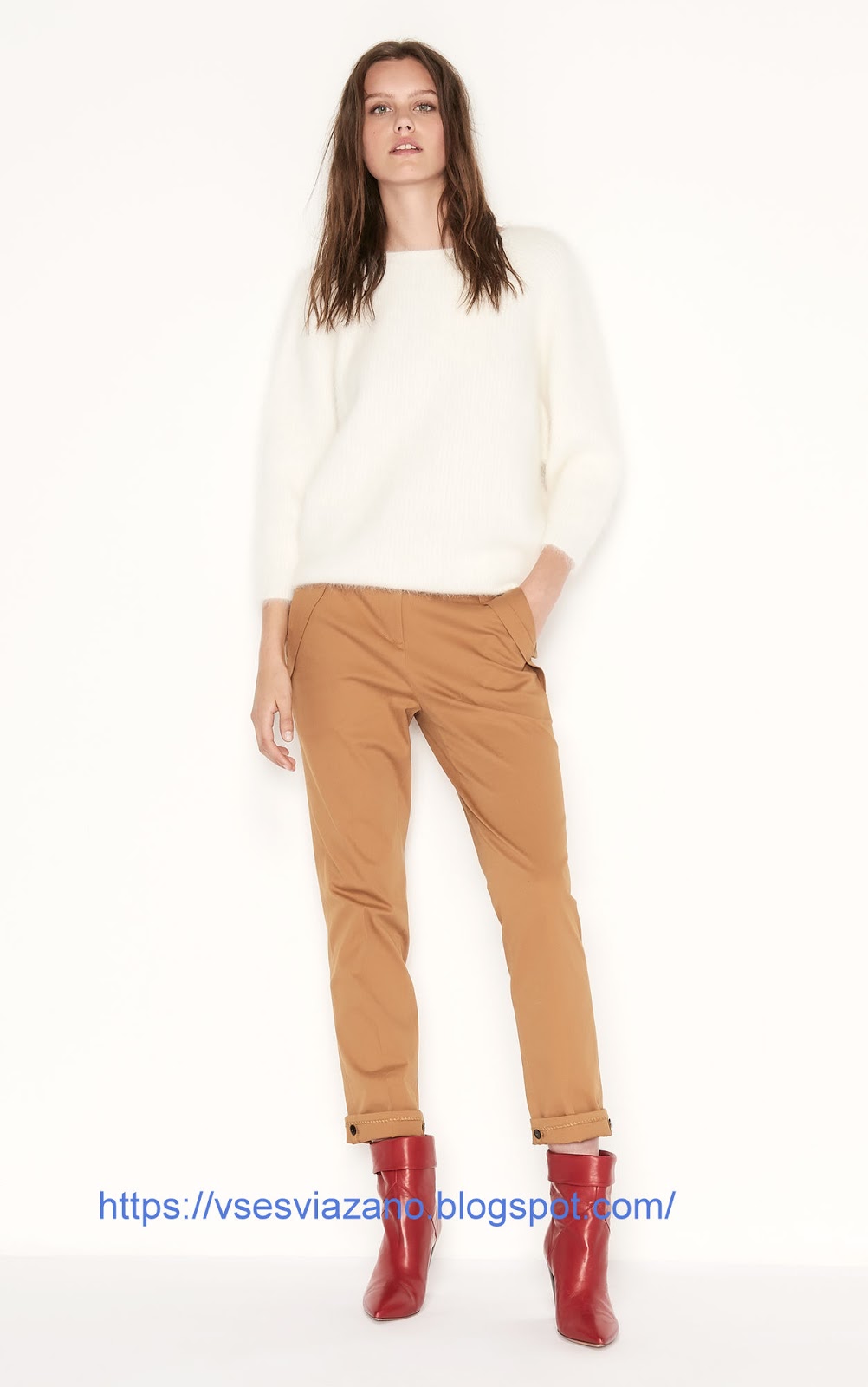 Мы долго расматривали все фото - не могли понять, есть в оригинале свитера вытачка в месте перехлеста двух деталей спины или нет. А ведь она хорошо видна в роховом, который вязали "по мотивам". НО ОНА ЕСТЬ - вот она хорошо видна в цвете "слоновая кость": Так что, стремясь повторить по описанию "как в оригинале", нужно просто делать выкройку посвободнее и вязать узором помельче из тонкой пряжи. Ну и пушистую нитку добавлять, но это по желанию уже.