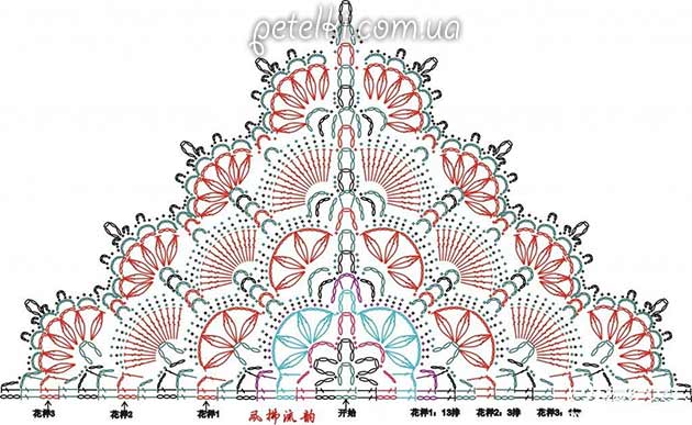 Схема прилагается. Кстати, она как раз угловая - специально для вязания шали.