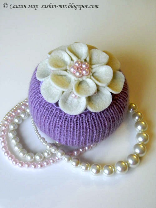Крышку крепим к шкатулке таким же кусочком фетра и затем крепим цветок.