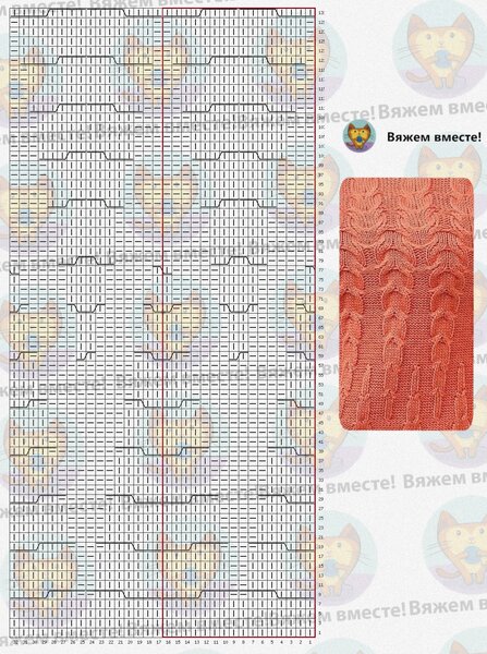 Раппорт узора равен всего 16 петлям по ширине и 132 рядам по высоте. Принцип вязания градиента заключается в том, что с каждым последующим переплетением из изнаночной петли вяжется лицевая или наоборот.