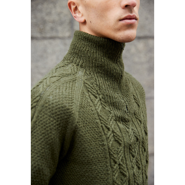 Оригинал выполнен из финской пряжи Novita Merino 4-ply (100% мериносовая шерсть, 230 м/50 г). Вам потребуется 400 (450) 500 (550) 600 (650) граммов цвета сосны, плюс круговые спицы № 3 и 3,25-3,5 длиной 80 см, чулочные спицы № 3 и 3,25–3,5 для рукавов, если вы не используете технику Magic Loop.