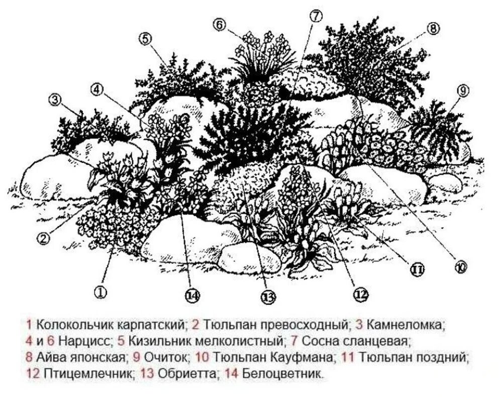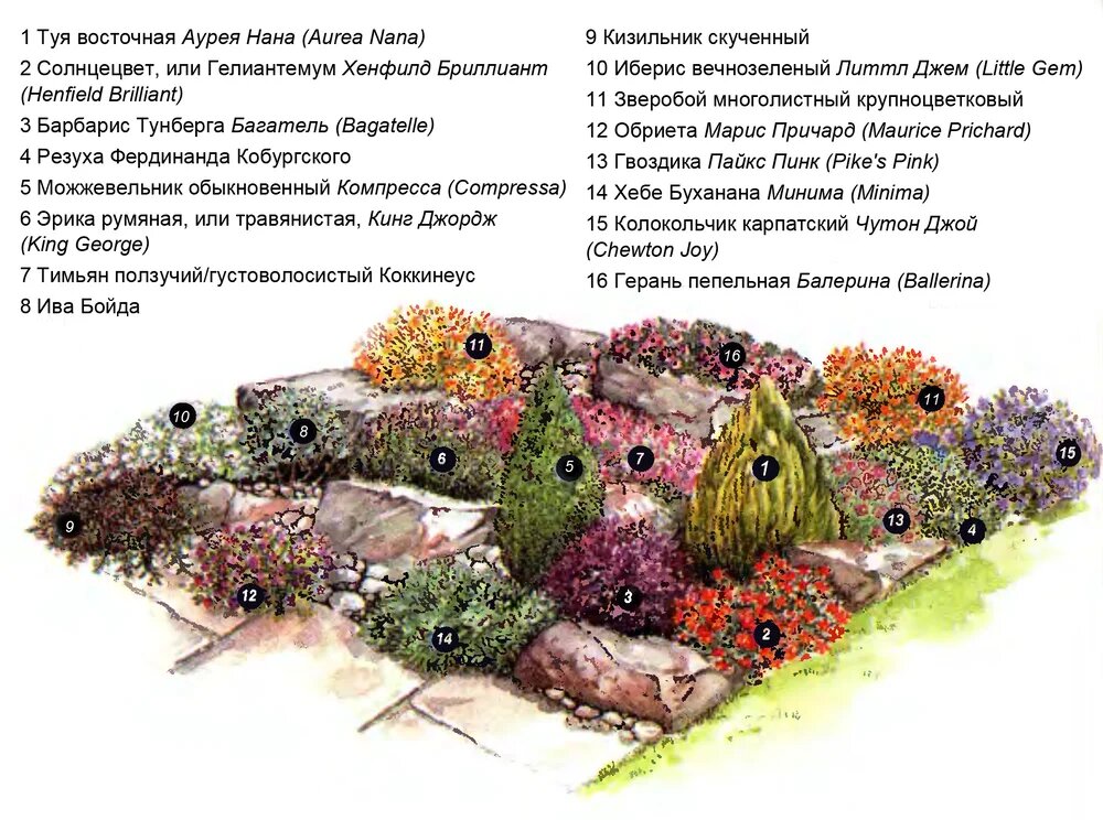 Для альпийской горки из камней своими руками подойдут следующие растения: