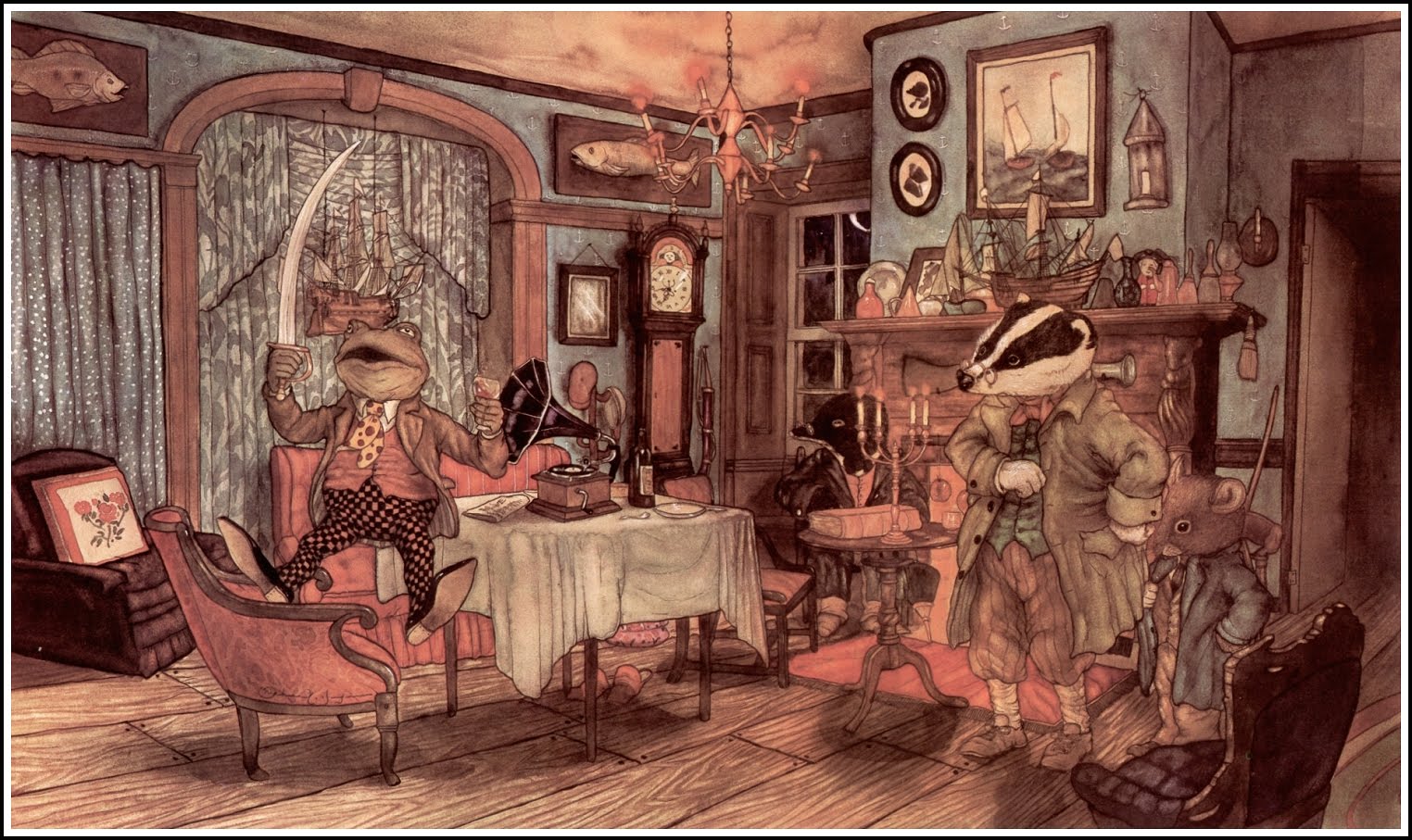 Рисованный мультфильм 1995 года "Ветер в Ивах" можно посмотреть тут, где играет Ваннеса Редгрев, а с 35 по 39 минуты самое приятное место для интерьерных декораторов (ИМХО):