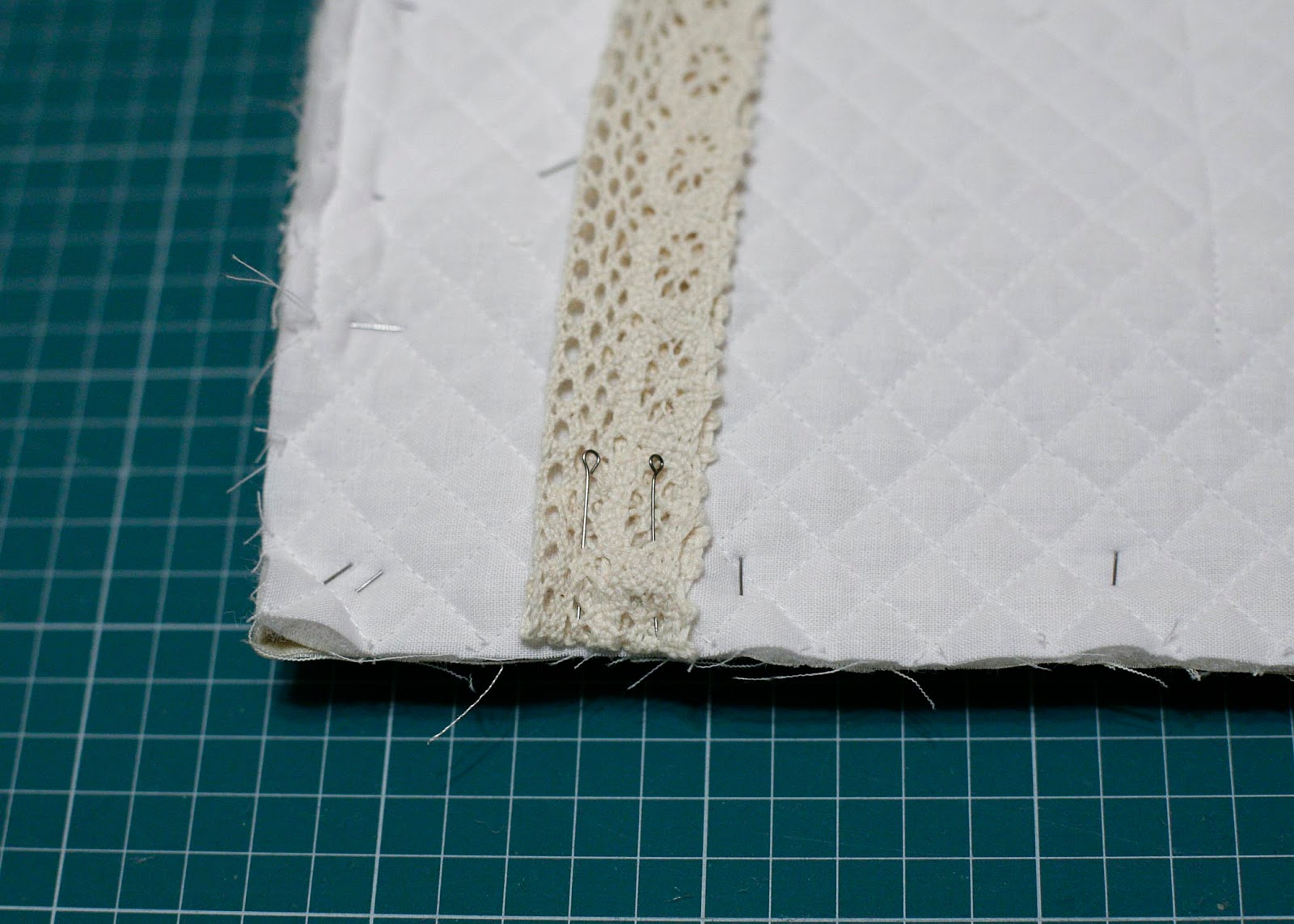 пришиваем кружево, его должно быть почти не видно, только свет застрянет в складках. Зигзагом ширина 2-3 мм.
