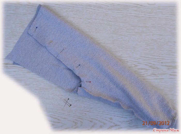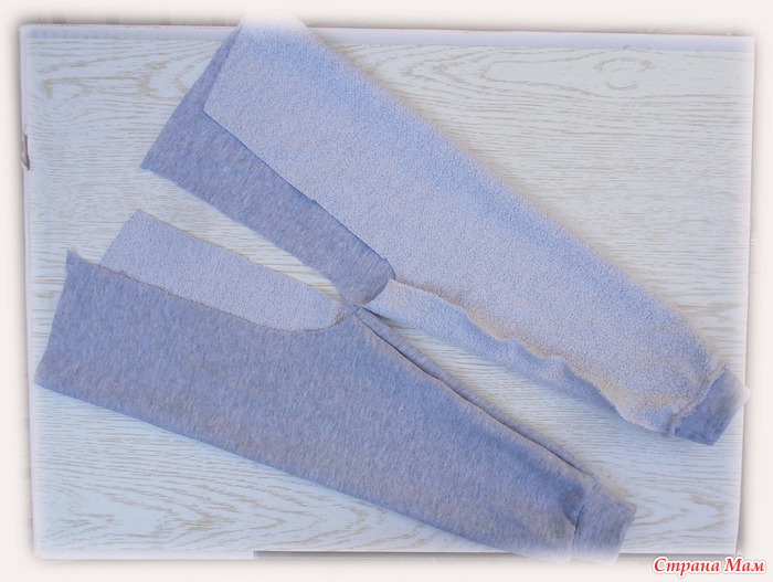 Вставляем одну штанину в другую, лицевыми сторонами вместе.