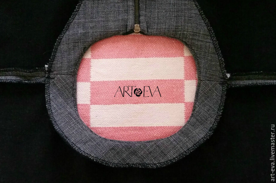 Пристрочили. Переворачиваем нашу деталь на изнанку, отрезаем излишки каймы и косой бейки, оставляя примерно 0,5 см от шва. Закрываем шов косой бейкой, пришивая ее вручную потайным швом.
