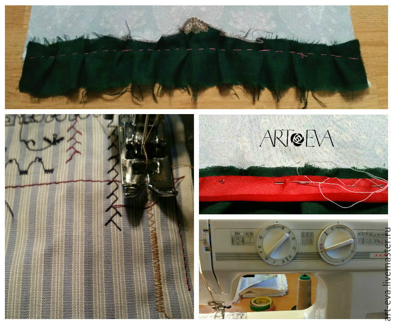 Прикалываем кайму портновскими булавками к низу нашего фрагмента, одновременно выравнивая ее по ширине и закладывая хаотичные складки.