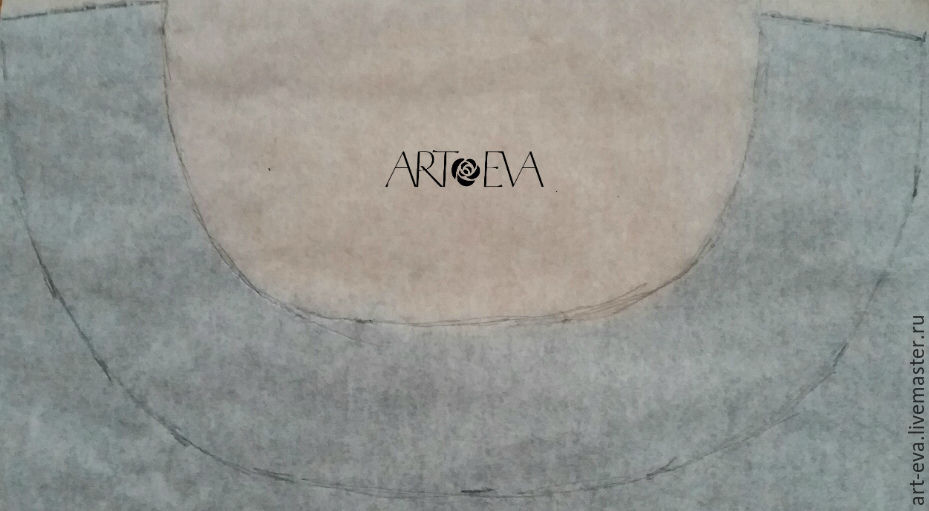 Горловину на передней части я опустила на 9 см, на спинке на 6 см, делаем припуск на шов 1 см.