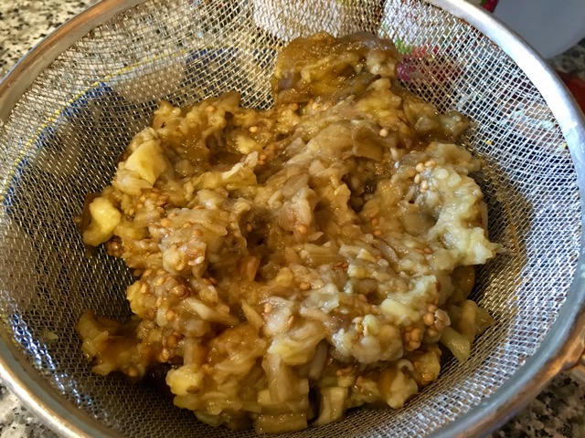 Кладем баклажаны в сетчатый дуршлаг, установленный над миской и оставляем на 15 минут.