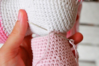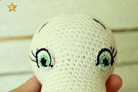 9 СБН в кольцо амигуруми, сшиваем края вместе и пришиваем к мордочке.