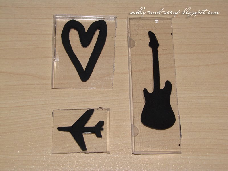 На полученные после распила блоки пластика я приклеила (уже основательно) свои штампики - у каждого появилась своя основа. Ими удобно работать, потому что пластик прозрачный, как акриловые блоки для силиконовых штампов. А резиновый коврик хорошо тонируется чернилами. В итоге у меня появилась сразу большая коллекция штампиков, на которую ушло 1,5 коврика для мыши: