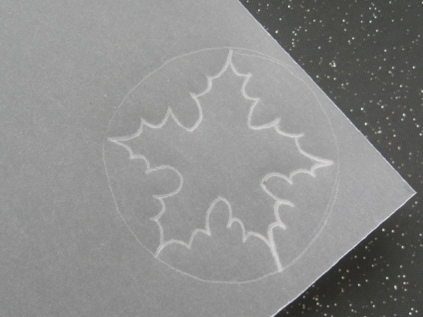 Я рисую их без трафарета (но можно сначала сделать трафарет)... Без трафарета они получаются натуралистично-кривоватые... ))) Сначала намечаю круг, а потом делю его на пять лепестков... Рисую гобеленовой иглой (№18, для вышивки, с тупым кончиком), положив кальку на коврик для мыши.