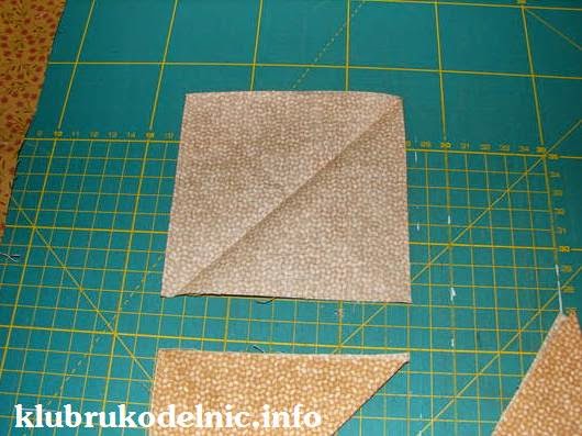 2. Сложим квадратики размером 11,5 х 11,5 см. Сначала сложим квадрат по диагонали, чтобы образовались два треугольника.