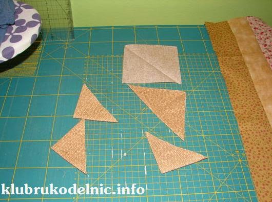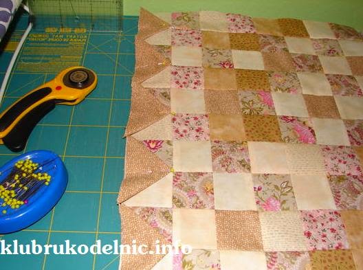 4. Образовавшиеся треугольники пришьем незачищенной стороной к детали из квадратиков.