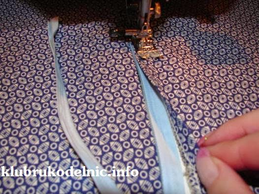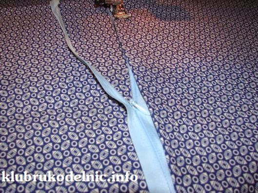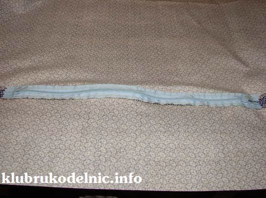 7. В заднюю сторону наволочки вошьем застежку молнию. У каждой детали подошьем одну длинную сторону. Положим лицом к лицу и сошьем на длину 6 - 10 см ( в зависимости от длины молнии), чтобы образовалось отверстие, куда будет вшита молния. Деталь разложим а шов разгладим по всей длине. Вставим молнию так, чтобы не были видны зубчики и прошьем по лицевой стороне.