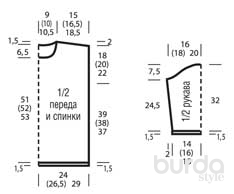25 п. х 36 р. = 10 x 10 см, связано узором для рукавов/лицевой гладью;