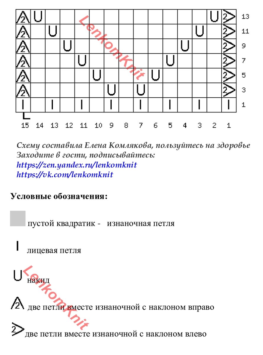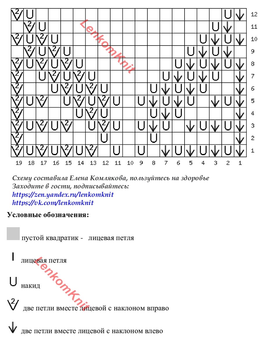 Это - один раппорт первой (нижней) каймы (ажур на фоне изнаночной глади). Узор вяжется только в лицевых рядах.