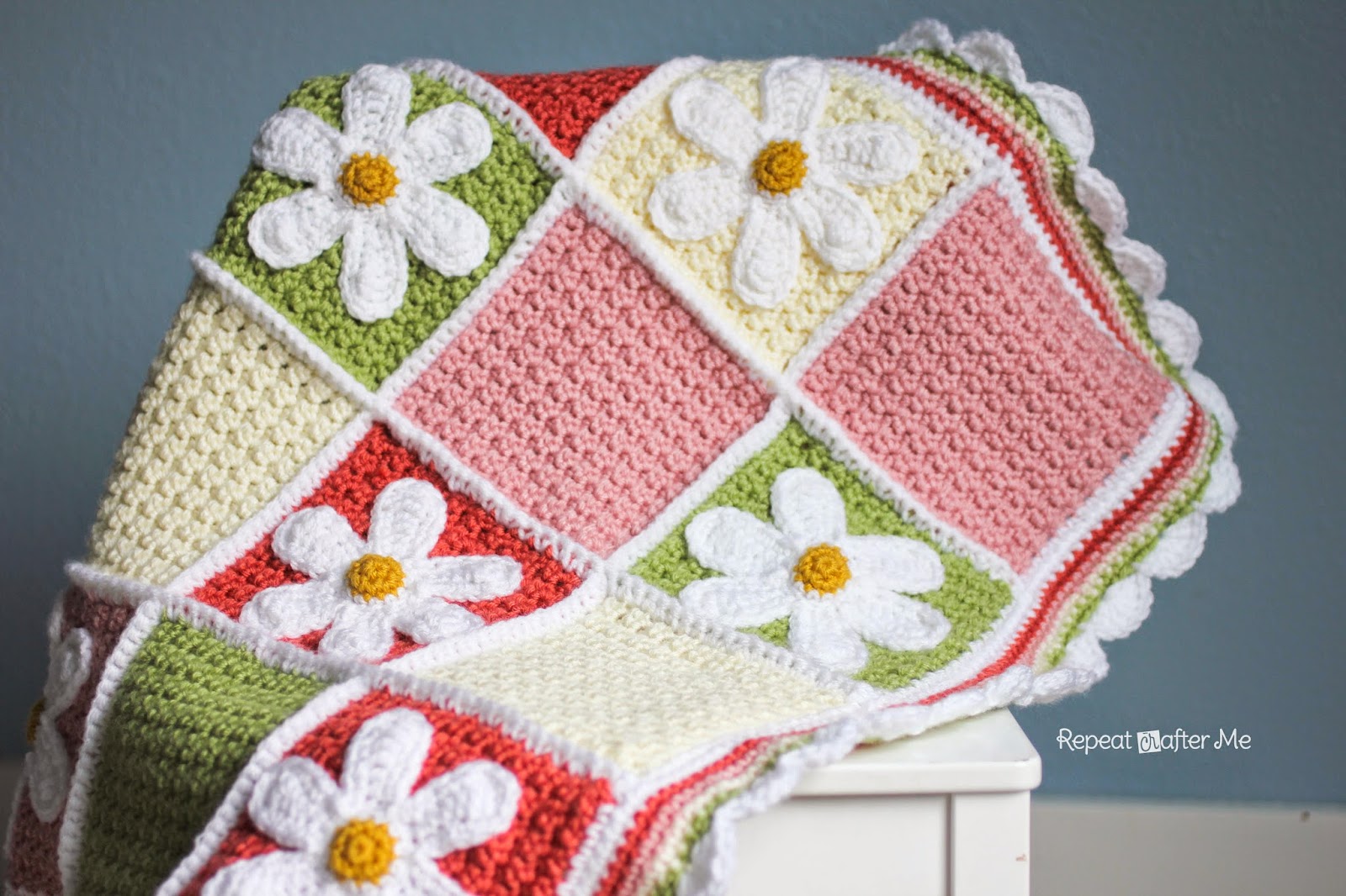 Вы можете найти шаблон вязаных ромашек ЗДЕСЬ-нажмите на выделенный текст.
